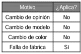 4. Condiciones para aceptar una devolución por falla de fábrica
